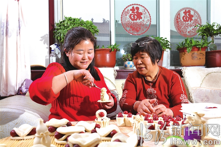 襄汾县古城镇站里村面塑艺人王文娟一家人在制作年馍,迎接新年的到来。