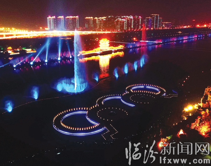临汾新闻网讯 2月18日,市汾河文化生态景区管理处在汾河公园进行了两场大型音乐喷泉水幕灯光秀表演,吸引了数千市民现场观看,记者用航拍的方式记录了音乐喷泉水幕灯光秀表演的盛况,并对汾河公园以及汾河两岸的城市夜景进行了拍摄,镜头下的临汾城夜景魅力无限、光彩夺目。