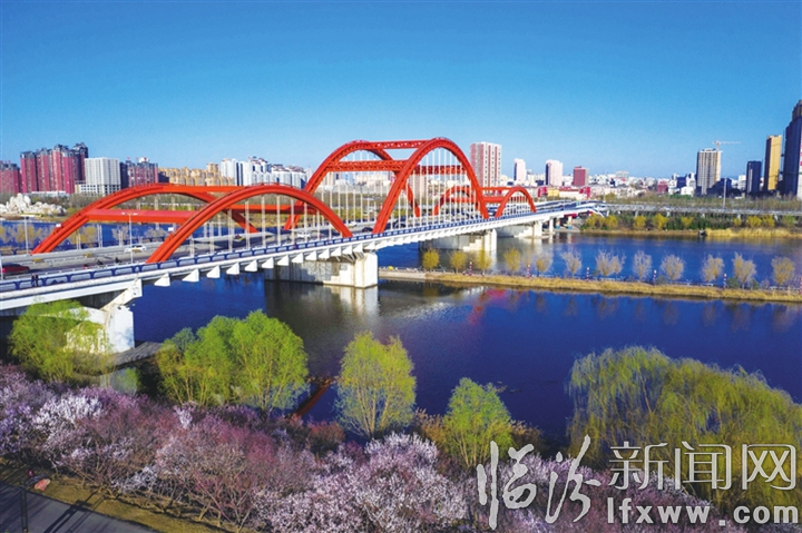 临汾新闻网讯 近日,航拍镜头下的我市汾河生态文化景区景色宜人。初春时节,汾河生态文化景区内,桃花初绽,垂柳吐绿,一派生机盎然的景象,宛如一幅幅美丽的风景画。