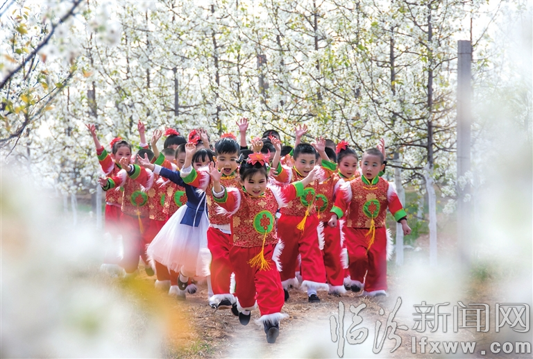 临汾新闻网讯 四月十日,在汾西县永安镇后加楼村梨园,踏青出游的孩子们在拍照。当日,该村举办首届玉露香梨花节,千亩梨园内的梨花竞相绽放,吸引了众多游客踏青赏花。