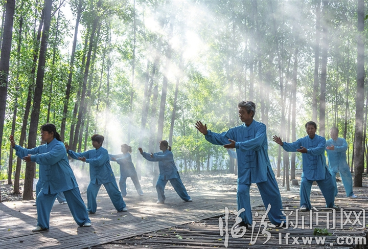 临汾新闻网讯 近日,在市区汾河生态文化景区,太极拳爱好者在晨曦中练习太极拳。随着二青会的举办,我市掀起全民运动热潮,各界群众积极投身到各项体育活动之中,享受运动带来的健康与快乐。