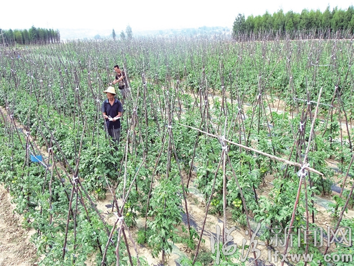 临汾新闻网讯 眼下正是蔬菜管理最忙碌的时节。汾西县团柏乡柴洼庄村村民李章云今年栽种的3.5亩西红柿长势喜人,丰收在望。图为他正在地里打理西红柿。