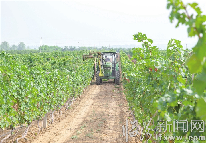临汾新闻网讯 襄汾县尧京葡萄酒庄种植的1000余亩酿酒葡萄目前正值生长旺季,该酒庄组织工作人员对葡萄树枝叶进行机械化修剪作业,既保证了葡萄生长所需的通光、透风等环境,同时大大提高了管护的工作效率。