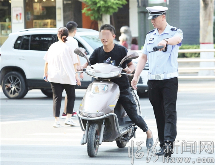 临汾新闻网讯 连日来,市公安交警支队组织民警及广大志愿者走上街头,规范交通秩序、倡导文明出行,打造良好的交通环境。图为民警在劝导违章骑行的市民。