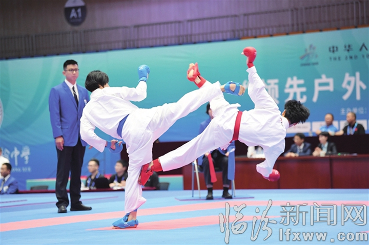 临汾新闻网讯 8月3日,二青会空手道决赛第二天,各俱乐部代表队之间展开了激烈角逐。图为运动员在俱乐部女子团体组手淘汰赛赛场。