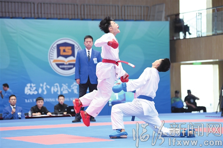 临汾新闻网讯 8月5日,二青会空手道比赛进行了体校组男子、女子各个级别的组手淘汰赛和复活赛。场上,运动员奋力拼搏,尽情释放活力与激情,精彩的比赛赢得了现场观众的阵阵掌声。