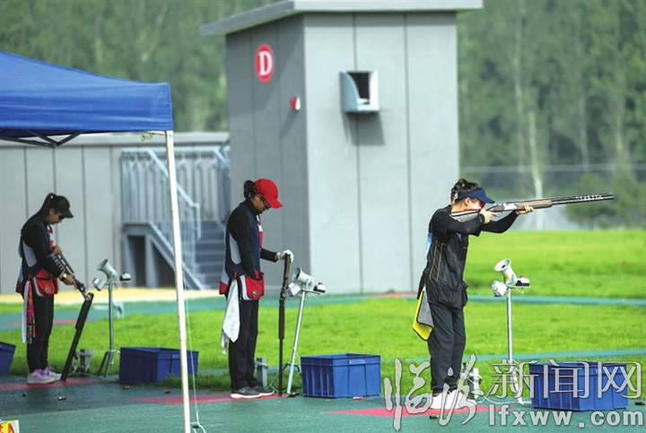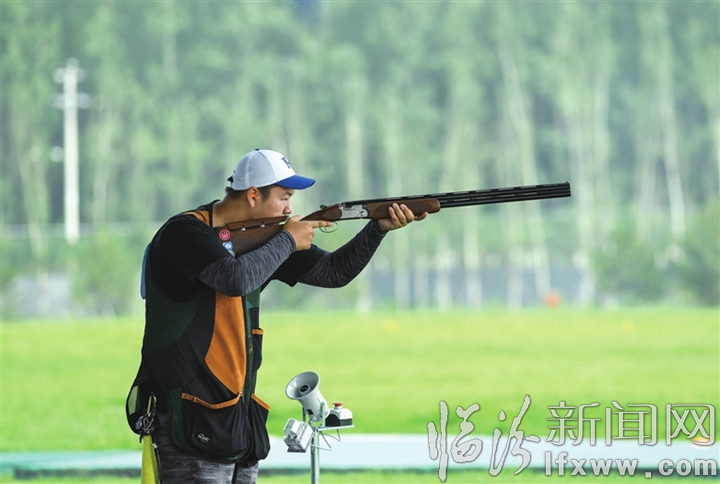 临汾新闻网讯 8月10日,全国第二届青年运动会射击(飞碟项目)比赛在我市开赛,来自全国各地的运动员将在为期6天的赛程里角逐9枚金牌。图为参赛选手在比赛中。