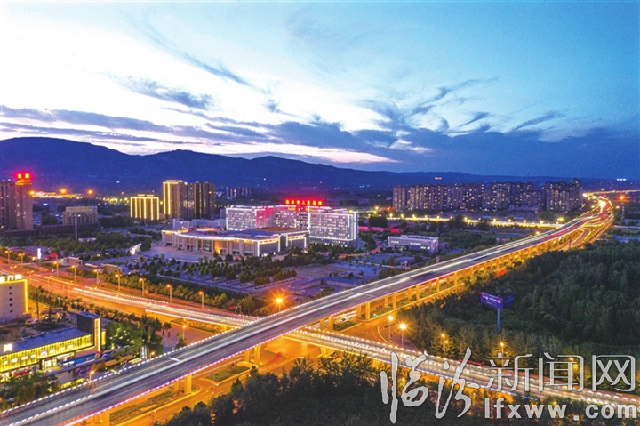 临汾新闻网讯 8月20日,航拍镜头下的滨西立交桥在灯带的装扮下显得格外美丽。