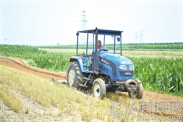 临汾新闻网讯 8月29日,在襄汾县大邓乡大邓村,村民驾驶农机在田间作业。连日来,我市各地农民抓住有利时机整理田地,为秋收秋播做准备。