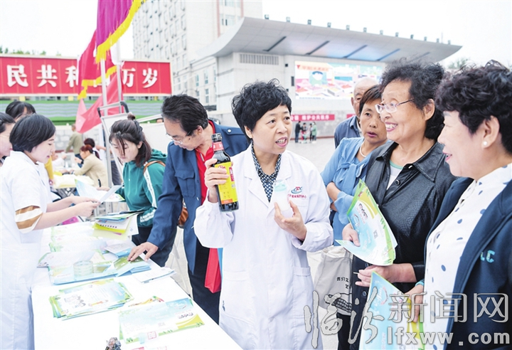 临汾新闻网讯 连日来,由市卫健委牵头临汾盐业公司及10余家医院,在市区平阳广场开展“三减三健”减盐科普宣传及义诊活动。活动通过设立咨询台、义诊、发放宣传资料等方式进行,让广大群众知晓健康知识,提高健康素养。图为9月12日,市疾控中心的志愿者在为市民讲解食物中盐的含量。