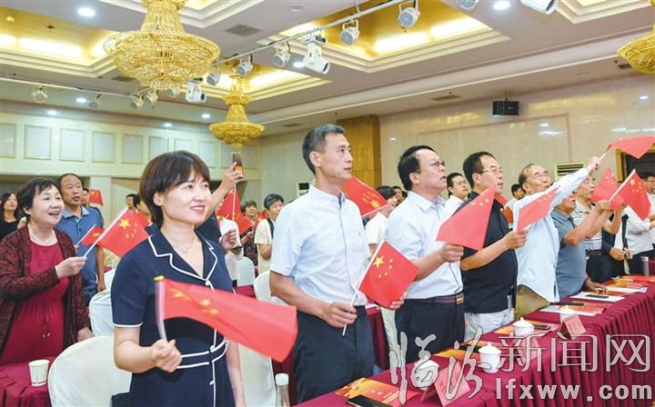 临汾新闻网讯 日前,民革临汾市委会举办了庆祝中华人民共和国成立70周年“砥砺奋进新时代,携手共筑中国梦”经典诵读会,用吟诵红色经典诗词、散文及励志故事的形式来表达对伟大祖国的美好祝愿。图为全体人员在诵读会上齐唱《我和我的祖国》。