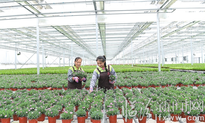临汾新闻网讯 11月21日,大宁县隆泰集团现代农业花卉双创示范园区里春意盎然,工作人员正在分拣花卉准备销往市场。该园区分为花卉生产示范区、加工物流交易区、科研培训项目和旅游观光养生区,通过土地流转等模式让当地42个村委的1658户4569口贫困人口参与分红达413.8万元,户年均增收1200元,为当地的脱贫攻坚增添了动力。