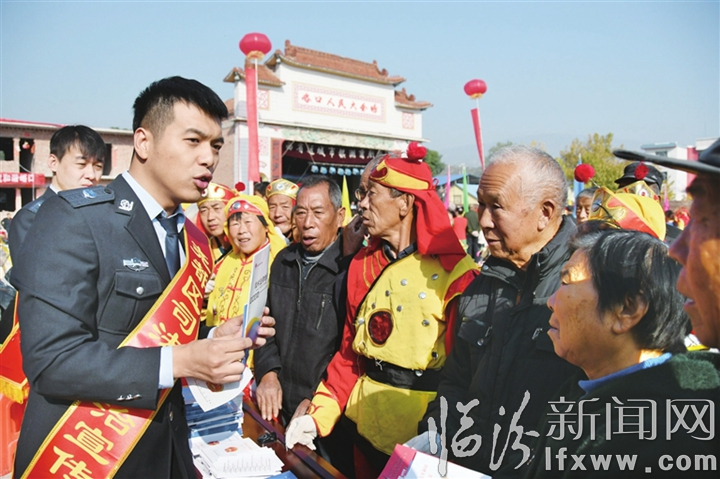 临汾新闻网讯 连日来,尧都区金殿司法所因地制宜,在辖区农民文化艺术节举办之际,向村民普及宪法、农村法律法规及法律援助相关知识,现场解答法律问题,引导他们正确维护自己的合法权益。图为11月24日,金殿司法所的工作人员在峪口村宣讲农村法律知识。