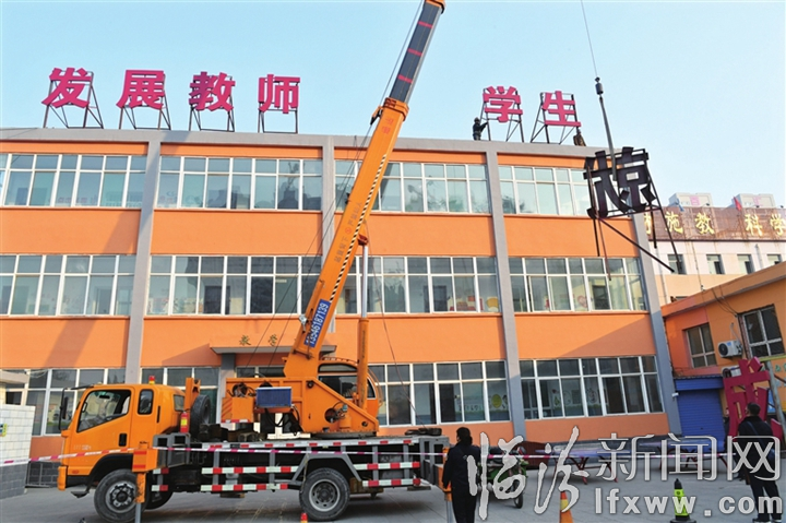 临汾新闻网讯 近日,市城市管理局组织专业拆装人员对尧都区西关小学楼顶具有安全隐患的广告牌匾依法进行拆除。