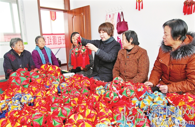临汾新闻网讯 2019年12月29日,襄汾县赵康镇赵康村红红传统手工专业合作社的民间艺人围坐在一起,制作“太平绣球”,庆祝新年的到来。“太平绣球”是山西省非物质文化遗产项目之一,由十二片花瓣相拼接缝合而成,寓意团结和睦,传承至今已有千余年历史。