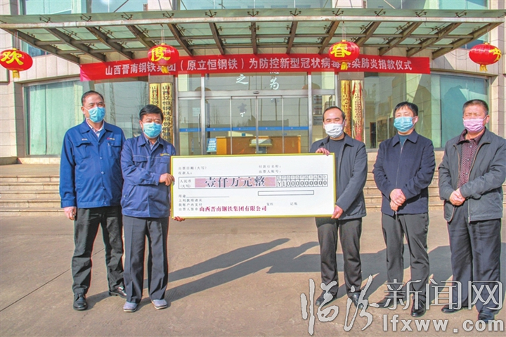 临汾新闻网讯 在全国上下防控新型冠状病毒感染的肺炎疫情的关键时刻,2月4日下午,山西晋南钢铁集团对接曲沃县工商联,为疫情防控捐款1108万元(员工捐款108万元),全力支援武汉抗击疫情,以实际行动彰显企业的大爱与担当。