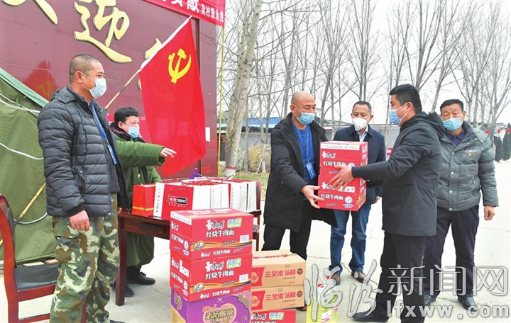 临汾新闻网讯 “为了防控疫情,你们24小时守在这里,真是太辛苦了,向你们致敬!”2月6日,市民李俊生来到尧都区吴村镇永盛村疫情防控劝返点,为驻守在这里的党员志愿者送去了口罩、消毒液、方便面等物资,向他们表达自己的敬意。