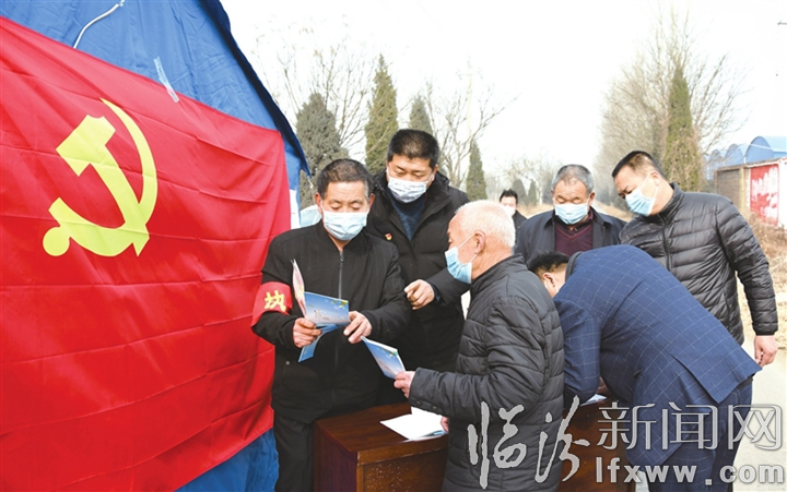 图③ 近日,在襄汾县新城镇闫店村疫情防控卡点,该村的党员先锋队在核查出入人员出行信息和派发宣传教育资料。