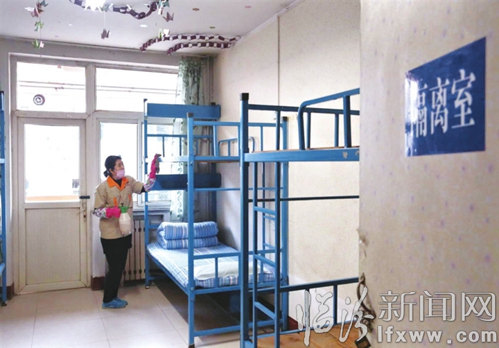 临汾新闻网讯 二月十七日,山西师范大学现代文理学院的工作人员正在备用隔离室整理卫生。连日来,该院利用校医院设置临时隔离观察场所供应急备用,全力做好高校后勤保障和校园防疫工作。