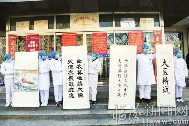 临汾新闻网讯 2月17日,我市老党员、退休干部宋希祥、孙宝索、章云芳为市第三人民医院送上了他们创作的书画作品《同舟共济》《大爱无疆》《天使无畏战疫魔》,受到了医护人员的欢迎。