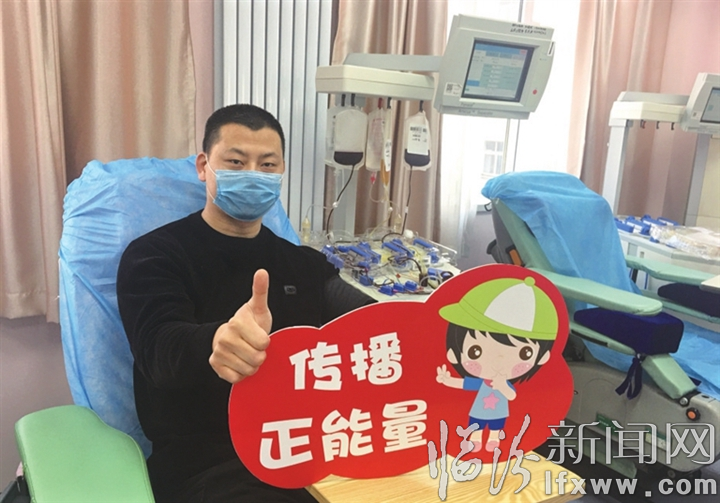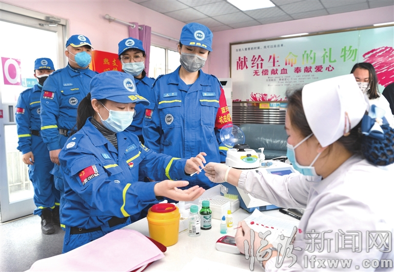 图① 2月16日,在市中心血站,市公安局直属分局尧庙派出所民警马卉参加献血。