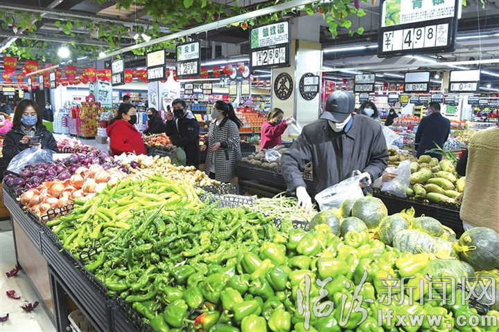 临汾新闻网讯 2月23日,记者在洪洞县城区一家超市看到,果蔬蛋奶及各类日常用品供应充足,市民购物有序。