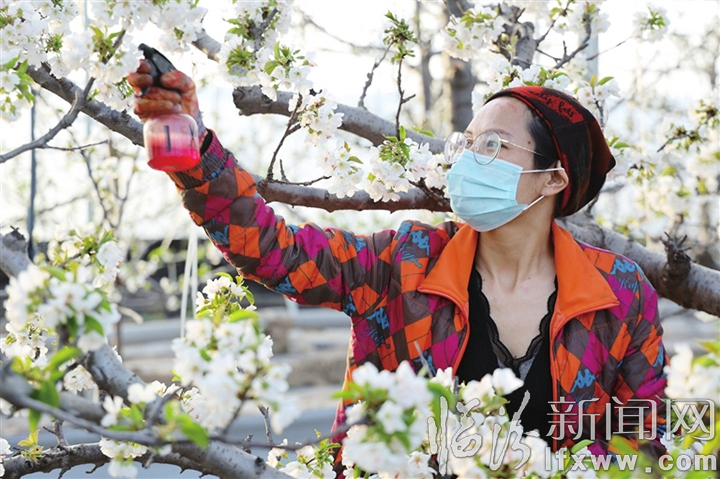 临汾新闻网讯 近日,在翼城县南唐乡下阳村的樱桃种植大棚里,村民正在对樱桃树进行人工授粉作业,做到了疫情防控和农业生产“两不误”。