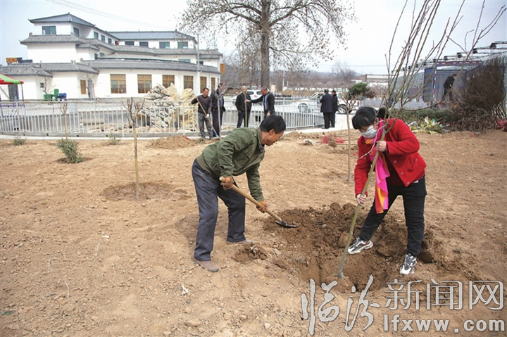 临汾新闻网讯 3月12日是全国第42个植树节,吉县干部群众齐上阵,植树添绿,美化家园。图为东城乡社堤村村民在新农村广场植树。