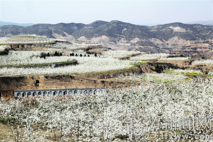 临汾新闻网讯 “忽如一夜春风来,千树万树梨花开”。近日,汾西县团柏乡柴洼庄3000亩玉露香梨基地的梨花竞相开放,景色秀美,漫山的馨香令人陶醉。
