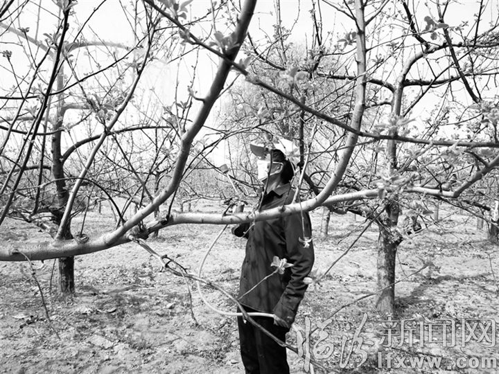 临汾新闻网讯 当前是苹果树管理的关键时节,大宁县广大果农狠抓田间管理,力争今年有个好收成。图为大宁县太古乡坦达村果农冯平辰正在给果树喷药。