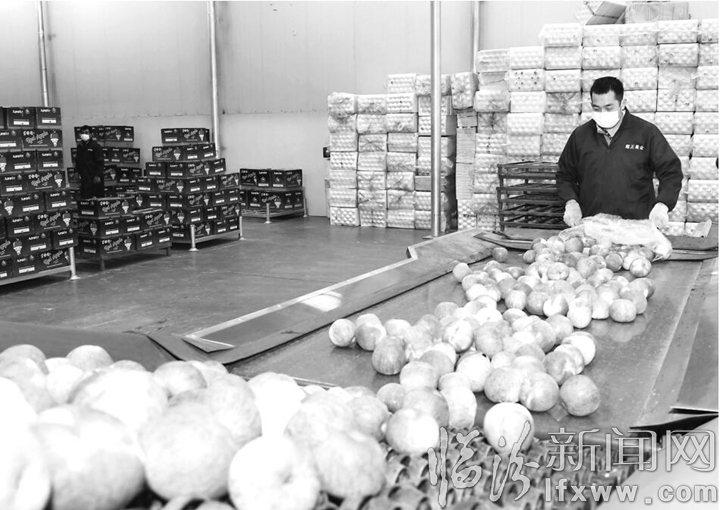临汾新闻网讯 新冠肺炎疫情发生以来,吉县超正果业有限责任公司一手抓疫情防控,一手抓生产经营,坚持向果农提供苹果生产物资配送、冷藏物流等服务,持续拓宽吉县苹果的销售市场。图为工人正在分拣苹果。