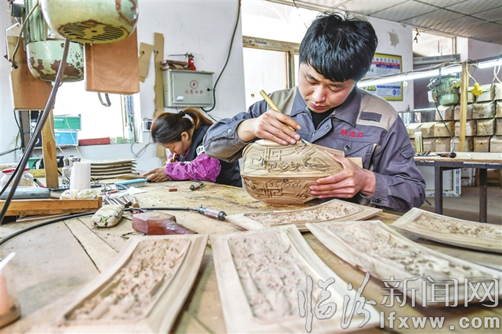 临汾新闻网讯 4月25日,在临汾市映连红古典家具厂手工制作车间,技术人员在对产品用料组件精雕细刻。近一段时间以来,该厂一手抓疫情防控,一手抓产品创新,努力做到产销两旺。