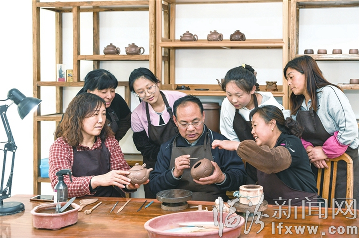临汾新闻网讯 5月15日,在乡宁县金砂紫陶工艺美术有限公司,省级工艺美术大师吴志文正在指导学员技艺要领。该公司致力于传承乡宁传统紫砂文化,目前已带动周边200余人实现稳定就业。