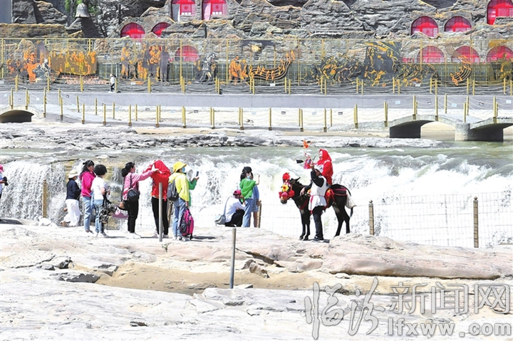 临汾新闻网讯 5月19日,游客们正在壶口瀑布风景区游玩。当日为中国旅游日,壶口瀑布风景区对购买全价票人群实行半价优惠。