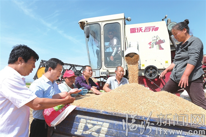 临汾新闻网讯 5月28日,翼城县南唐乡范牛村村民正在收割小麦。这是翼城县夏收“第一镰”。