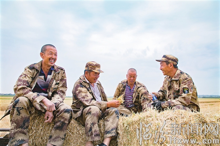 近日,在襄汾县西贾乡西彭村君强家庭农场,农民们利用闲暇时间分享小麦收获的喜悦。 记者 王 婧 见习记者 赵振宇 摄