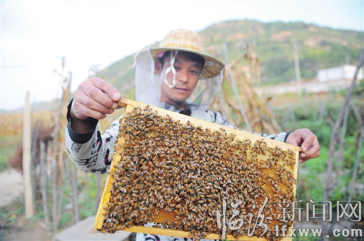 临汾新闻网讯 近日,在大宁县昕水镇石城村,村民在查看蜜蜂的采蜜情况。该村因地制宜养殖蜜蜂,定期邀请技术人员进行技术指导,蜂农从最初的10余户发展到如今的30余户,成为村民致富增收的新路子。
