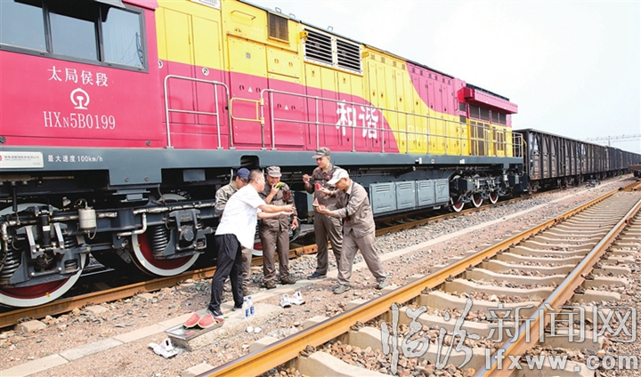 临汾新闻网讯 近日,太原铁路局侯马车务段采取多种形式,为职工送去防暑降温食品、药品,保证职工身体健康。图为侯马北站为调车组人员送“凉爽”。