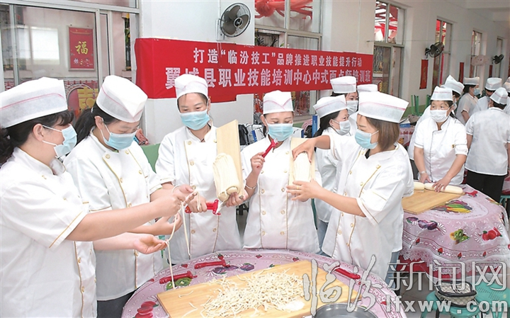 临汾新闻网讯 近日,翼城县人社局职业技能培训中心中式面点师培训班的学员们正在练习刀削面基本刀法。