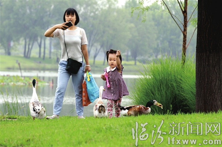 临汾新闻网讯 8月19日,市民在市区涝洰河生态公园游玩。随着气温下降,许多市民走出家门,来到公园、郊外,尽情享受大自然的美景。