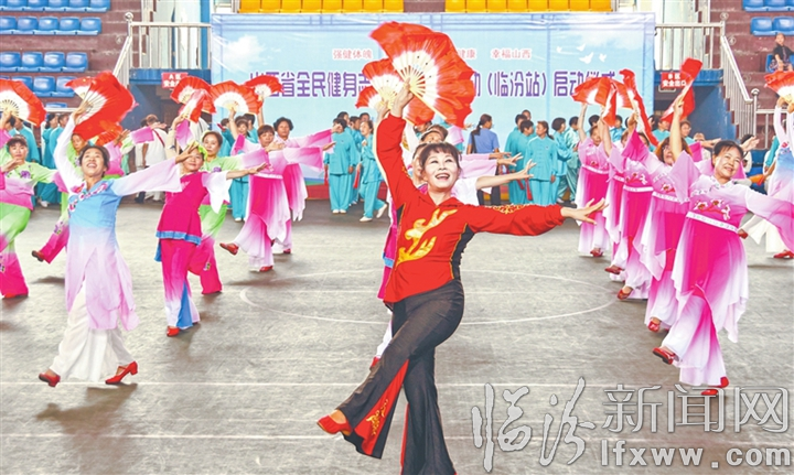 临汾新闻网讯 8月28日,在尧都区体育馆,社区健身志愿者在表演健身秧歌。当日,山西省全民健身志愿服务系列活动(临汾站)启动,此次活动的全民健身志愿者包含新招募的优秀社会体育指导员、教练员、运动员,他们将走进农村、社区,通过开展全民健身指导服务、健身科普讲座、国民体质监测等活动,引导广大群众开展丰富多彩的体育健身活动。