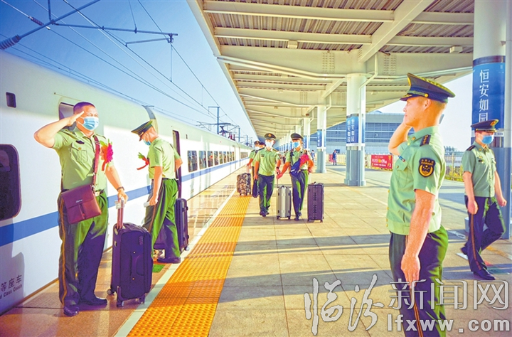 临汾新闻网讯 军旅荏苒写春秋,岁月峥嵘塑忠诚。8月31日下午,武警临汾支队举行2020年度夏秋季士兵退役仪式,一百多名老兵即将开启人生新征程。图为战友们在临汾西站依依惜别的场景。