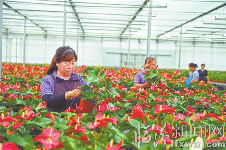 临汾新闻网讯 10月13日,在大宁现代农业花卉双创示范园区的花卉大棚里,员工正在精心管护花卉。近年来,大宁县以打造花卉产业集群为目标,大力发展花卉产业,带动了一方群众致富。