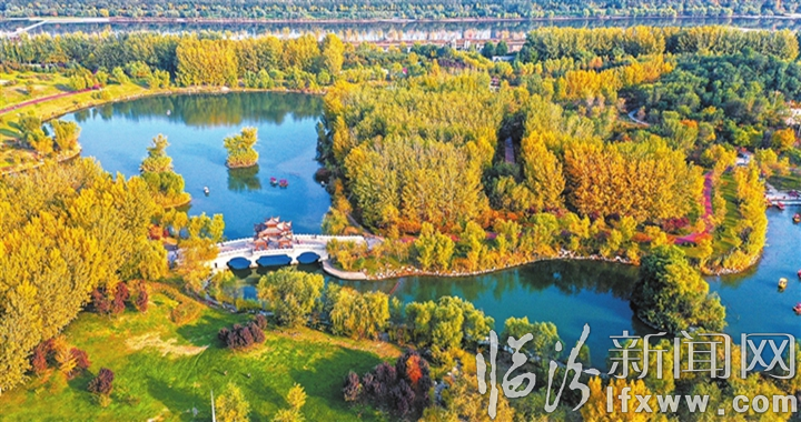 临汾新闻网讯 11月2日,航拍镜头下的市区汾河文化生态景区,秋色宜人,层林尽染,落英缤纷。碧水黄叶相映成趣,构成了一幅美丽的金色画卷,让人流连忘返。