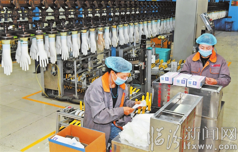 临汾新闻网讯 11月10日,在山西鸿晋塑胶科技有限公司一次性手套生产线上,工人正在对一次性手套进行包装。该公司在大宁县投资建设的年产40亿只一次性防护手套项目,实现了当年签约落地、当年投产达效、当年出口创汇。