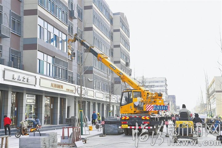 临汾新闻网讯 12月3日,市区财神楼南北街道路提质改造工程现场,施工人员正在对道路两侧建筑立面进行升级改造。目前,工程正按照时间节点全力冲刺,争取早日完工。