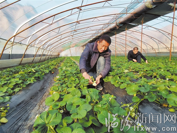 临汾新闻网讯 12月13日,在翼城县南唐乡河云村一大棚内,种植户李建华在察看自家草莓的长势。进入12月以来,该村的大棚草莓陆续进入了成熟期,吸引了市民纷纷前来观光采摘,为种植户带来可观的经济收入。