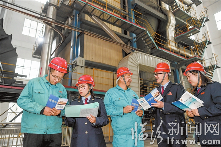 临汾新闻网讯 近日,国家税务总局古县税务局税务干部走进辖区企业,开展“依法诚信纳税,构筑企业信用品牌”税法宣传进企业、进车间活动,问需求、送政策,让企业税费优惠政策应享尽享。图为该局税务干部在古县恒光热力公司为职工宣讲税法知识。