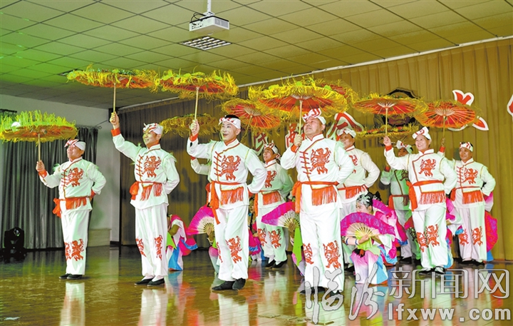 临汾新闻网讯 近日,尧都区群众艺术馆红杏鼓韵艺术团在表演《伞头秧歌》。当日,由尧都区文化和旅游局、武警临汾支队执勤一大队主办,尧都区群艺馆承办的“军民融合,文化共建”文艺演出成功举行,以歌舞、鼓乐、相声等喜闻乐见的形式为部队官兵送去一场丰盛的“文化大餐”。