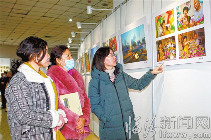 临汾新闻网讯 12月23日,市民在襄汾县文化馆观看书画摄影展。